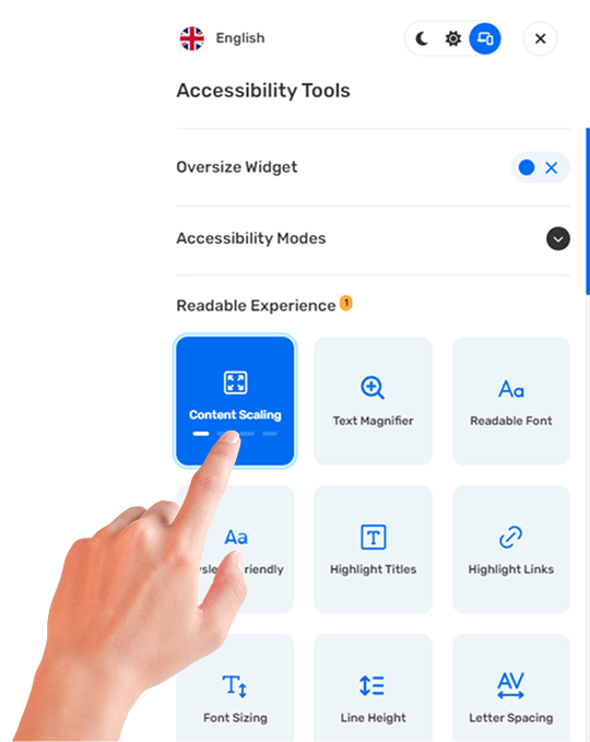 يتيح هذا القسم للمستخدمين تعديل عرض محتوى موقعك، مما يعزز قابلية القراءة للأشخاص ذوي الإعاقات المحددة.